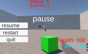the goal is to shoot the enemies and collect green cubes to restore your ammo and health.